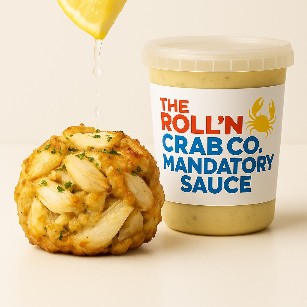 Our signature “Mandatory Sauce” was born from Maryland flavor and family tradition. Creamy, bold, and full of Chesapeake character, it’s crafted to bring out the best in everything we make — from our Premium Crab Cakes to our DIY Lump Crab Egg Roll Kits.